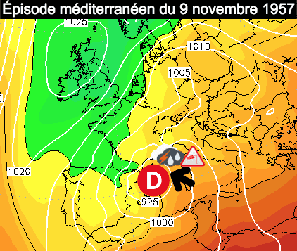 Du 3 au 10 novembre 1957, le temps est particulièrement mouvementé - pas moins de 2 violentes tempêtes balayent la France du 3 au 5 novembre 1957 - les rafales atteignent 150 km/h à Deauville, 135 km/h à Rennes et 120 km/h à Lyon.