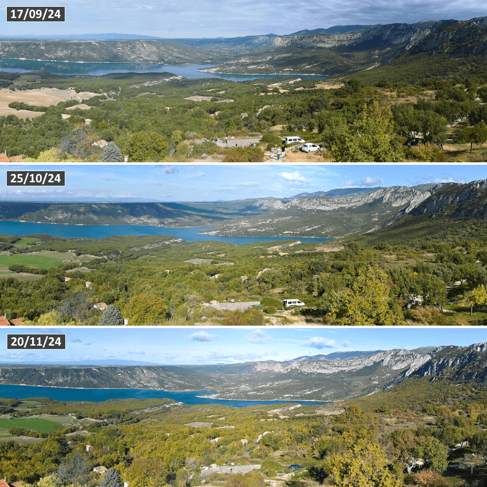 Couleurs des arbres le 17 septembre, le 25 octobre et le 20 novembre 2024 à Aiguines (83) - skaping