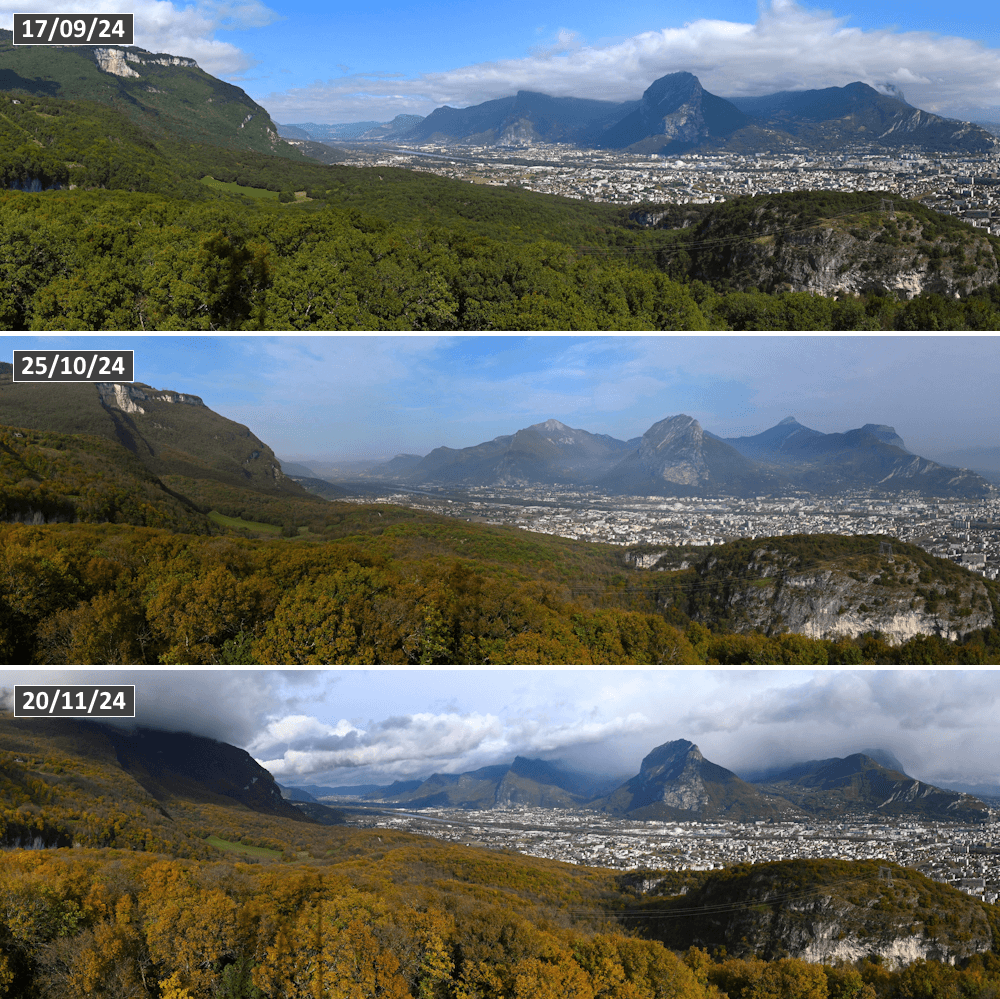 Couleurs des arbres le 17 septembre, le 25 octobre et le 20 novembre 2024 sur les hauteurs de Grenoble (38) - skaping