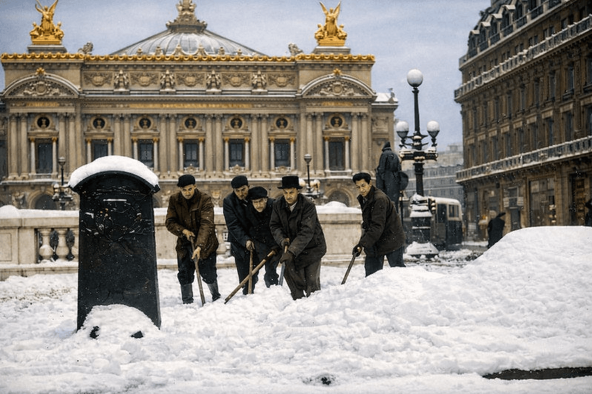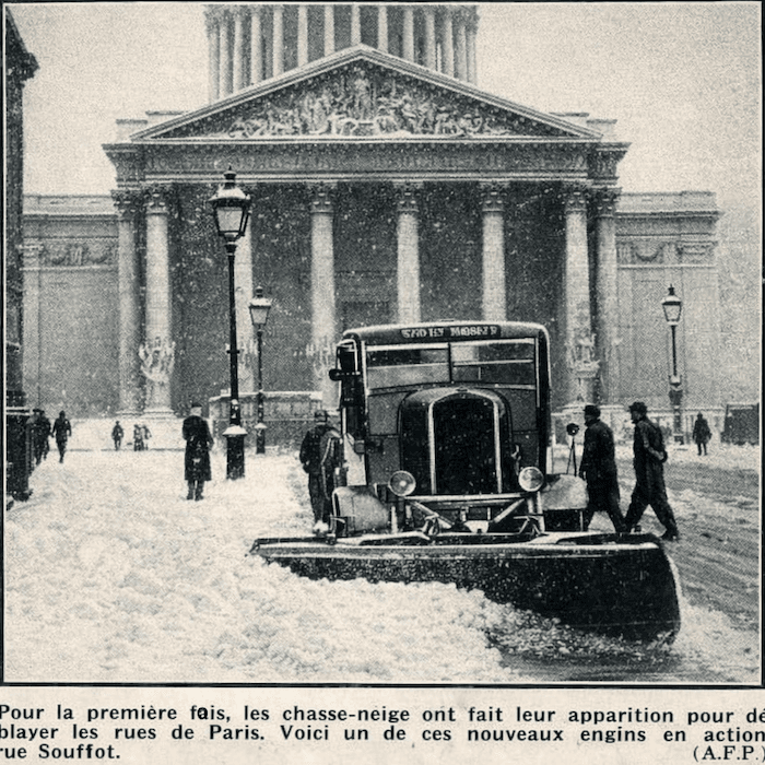 L'utilisation de chasse-neige devenue nécessaire dans Paris à la fin du mois de février 1948 - archives meteo-paris.com