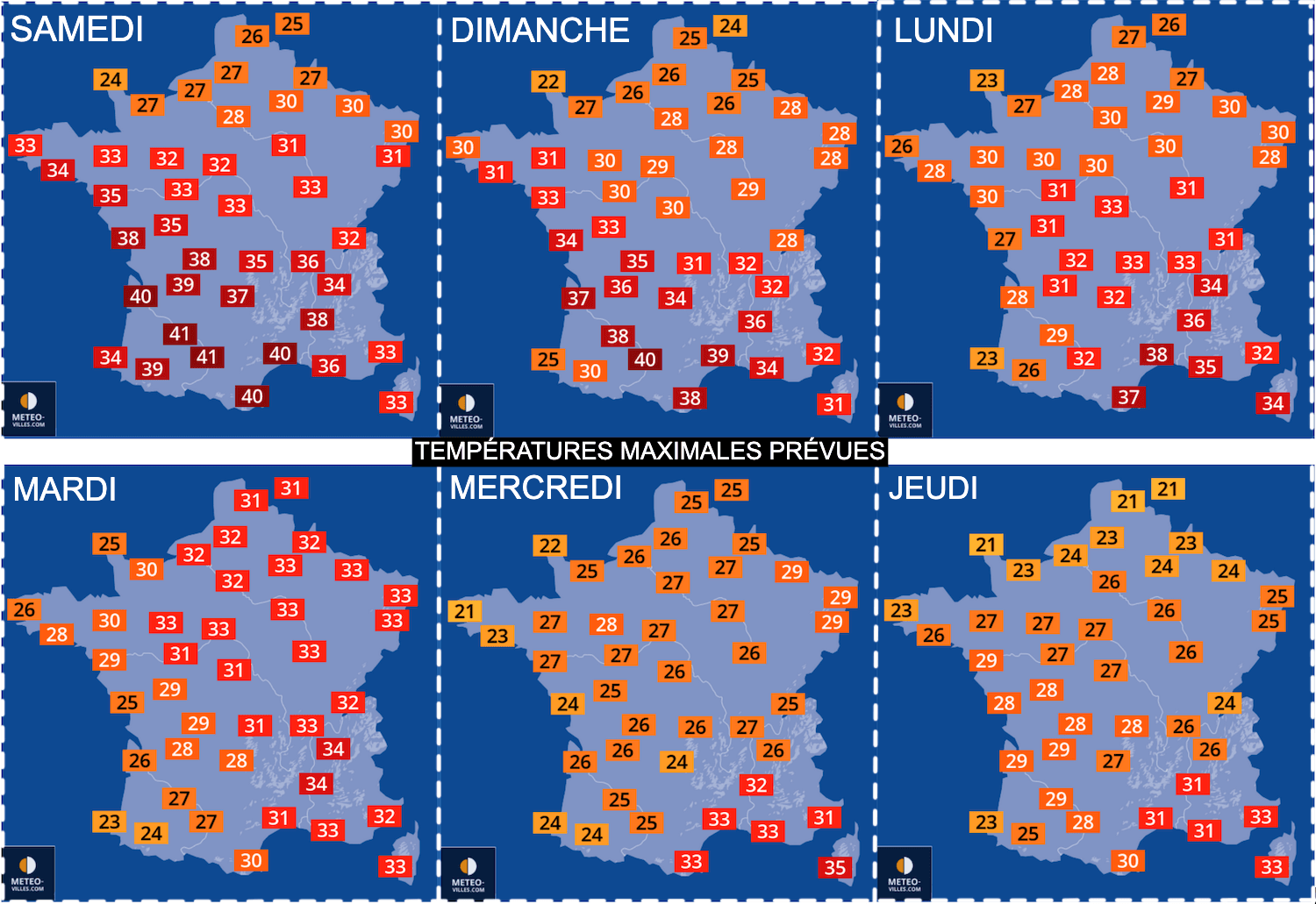 Prévision des températures maximales entre samedi et jeudi - METEO-VILLES >>>>