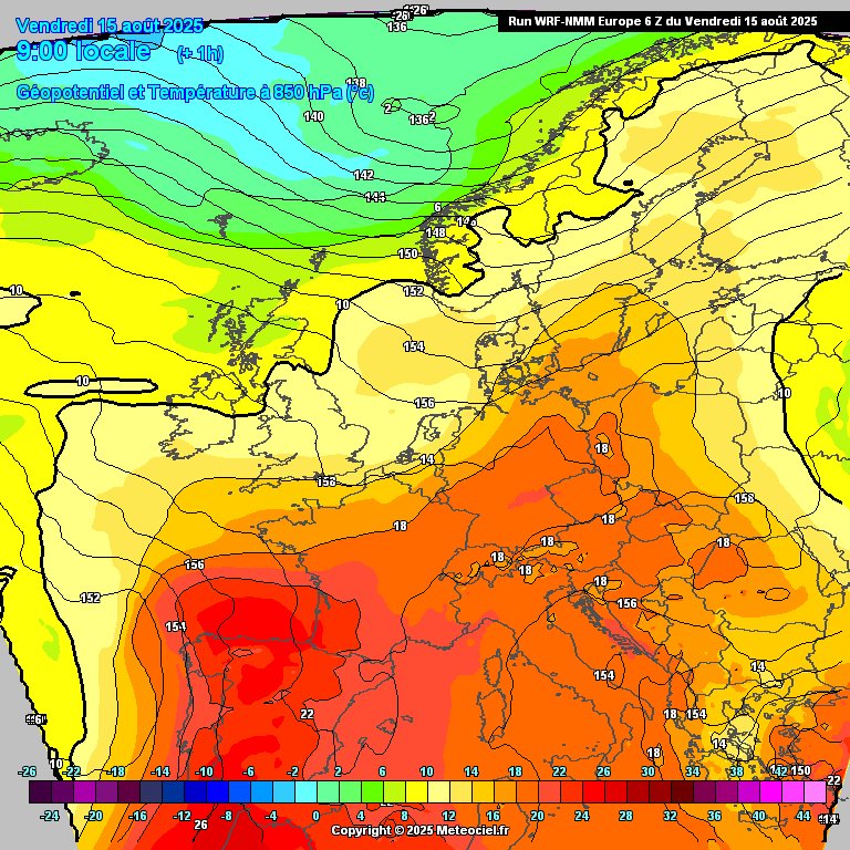 Évolution de la masse d'air çà 850 hPa entre vendredi et mercredi - modèle WRF via Meteociel
