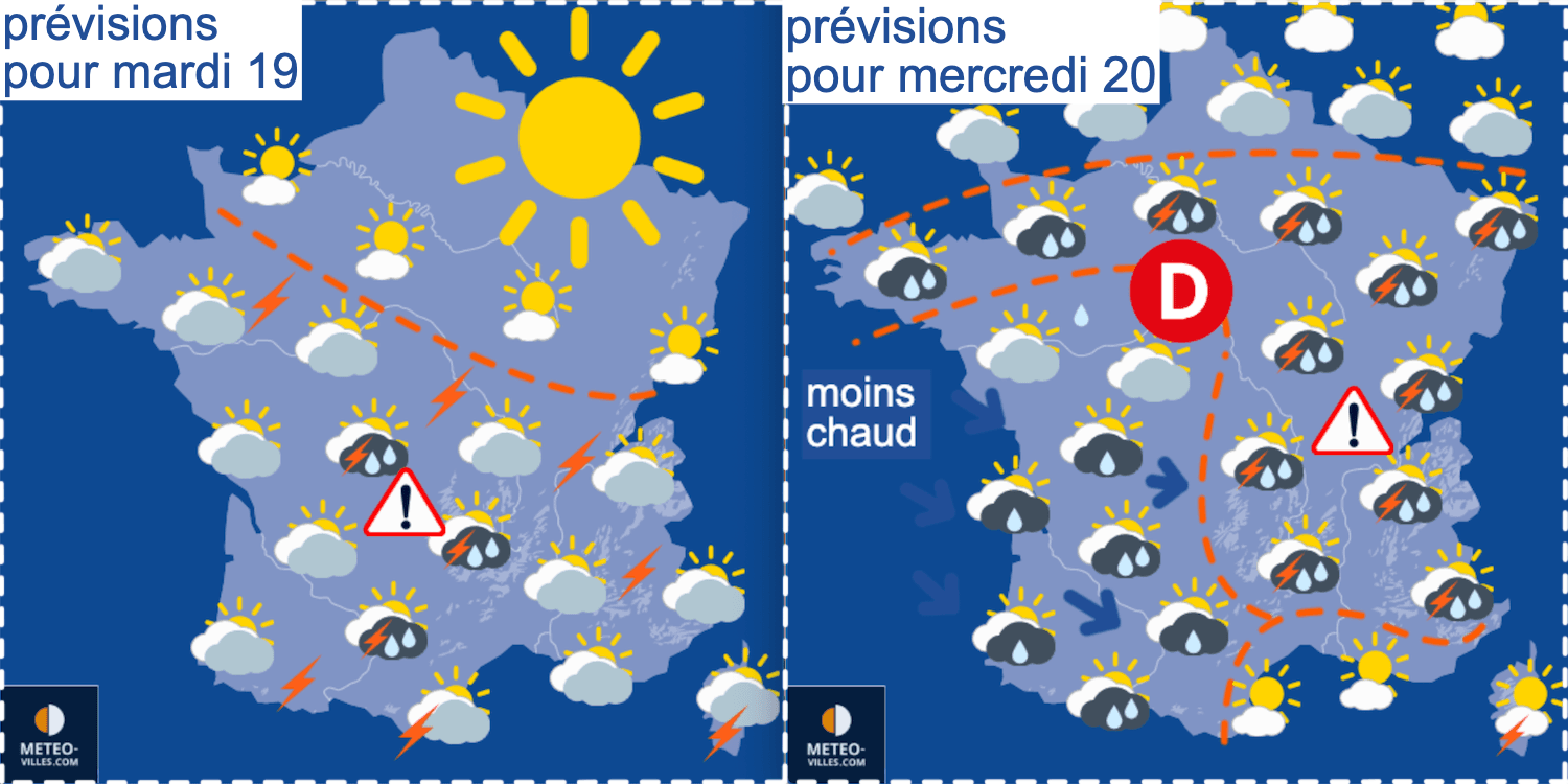 Puis, une dégradation orageuse est attendue entre mardi dans l’Ouest et mercredi sur les autres régions. Et cette fois-ci, les orages annonceront véritablement la fin de cette vague de chaleur !