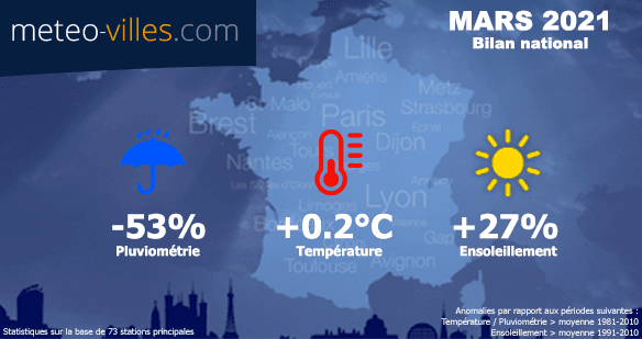 Bilan météo et climatique de mars 2021 : très peu de pluie, beaucoup de soleil !