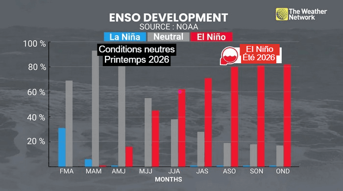 Probabilités de mise en place d'El Niño dans les prochains mois – Via The Weather Network