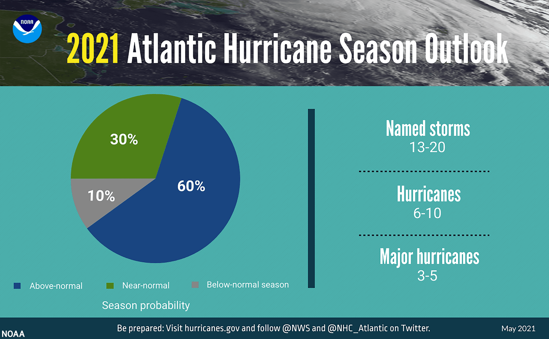 Prévision d'activité cyclonique dans l'Atlantique Nord en 2021 - NOAA