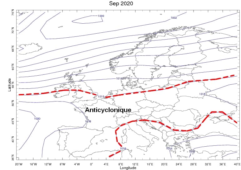 Pressions moyennes sur l'Ouest de l'Europe durant le mois de Septembre 2020 - Via NOAA