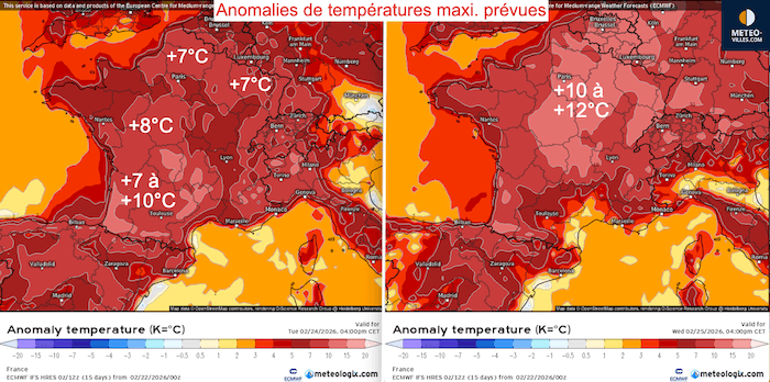 Anomalies thermiques prévues entre le 23 février et le 2 mars 2026 - modèle ECMWF