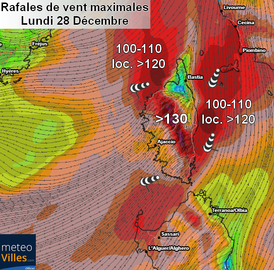 Dans le même temps les rafales vont également se renforcer sur la Corse, notamment près des reliefs et des secteurs exposés du littoral.