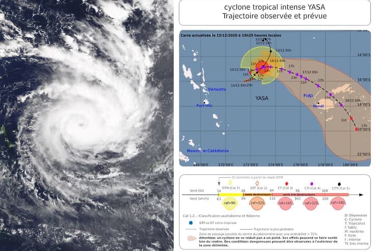 Le cyclone Yasa ce 15 décembre 2020 et sa trajectoire prévue vers les Fidji - via Météo France