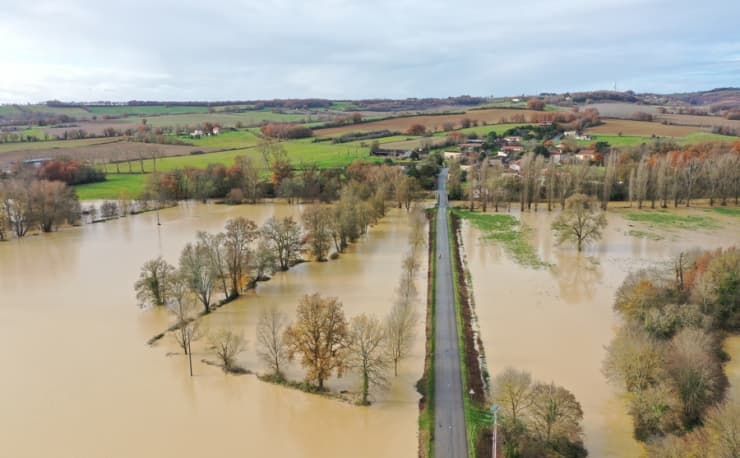 La Baïse sortie de son lit dans le Gers ce 12 décembre 2020 - photo Léo Puyau