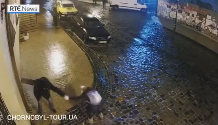 Il fallait s'entraider sur les trottoirs verglacés de Kiev (Ukraine) le 10 décembre 2020 - via RTE News