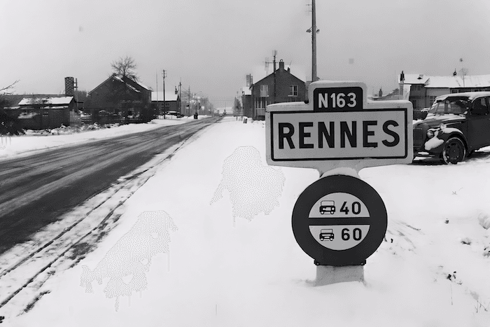 La Bretagne est loin d'échapper à cette vague de froid monumentale... ici, à l'entrée de Rennes, à la fin du mois de février 1963- archives meteo-paris.com