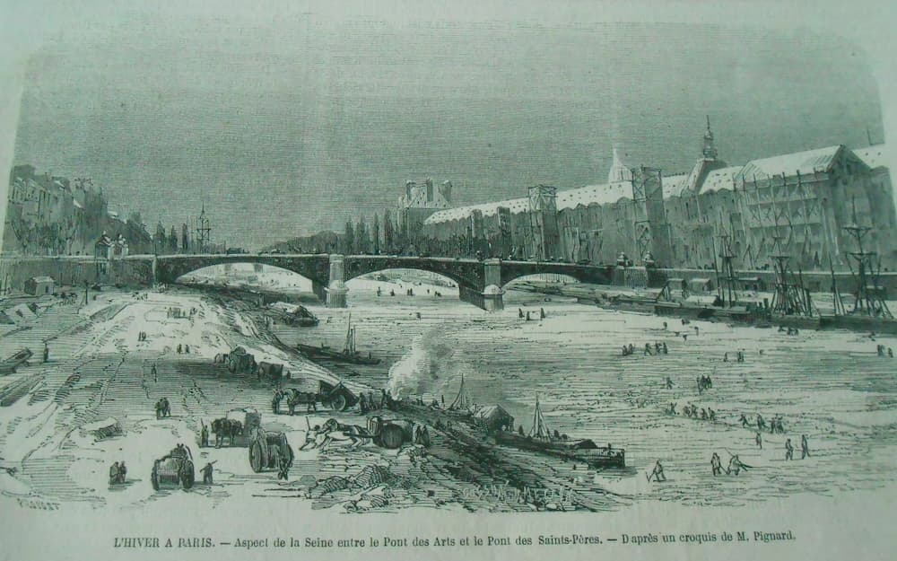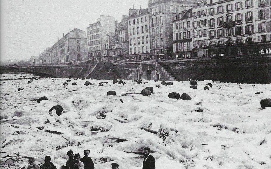 Du XIVᵉ au XIXᵉ siècle, l’Europe connaît le Petit Âge glaciaire, une période marquée par des hivers beaucoup plus rigoureux qu’aujourd’hui. À Paris, on voit alors régulièrement la Seine se couvrir de glace.
