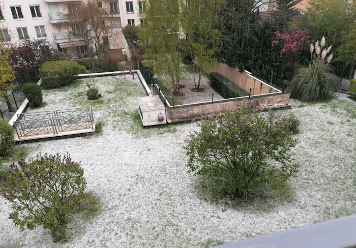 Giboulée blanchissant les sols à Nogent-sur-Marne (94) ce jeudi 26 mars 2026 - Lydia Dupuis Leroy