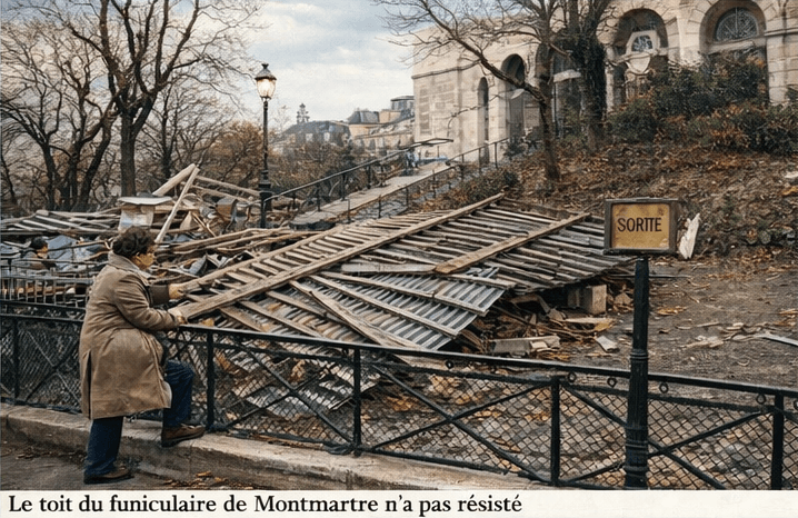 À Montmartre, le toit du funiculaire est balayé par des rafales qui frôlent les 150 km/h... - photo archives meteo-paris.com