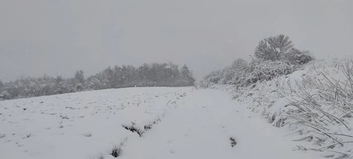 Abondantes chutes de neige près de Saint-Omer dans le Pas-de-Calais avec plus de 10-15cm au sol en fin de matinée du 1er avril 2022 - Photographie : @Land62100