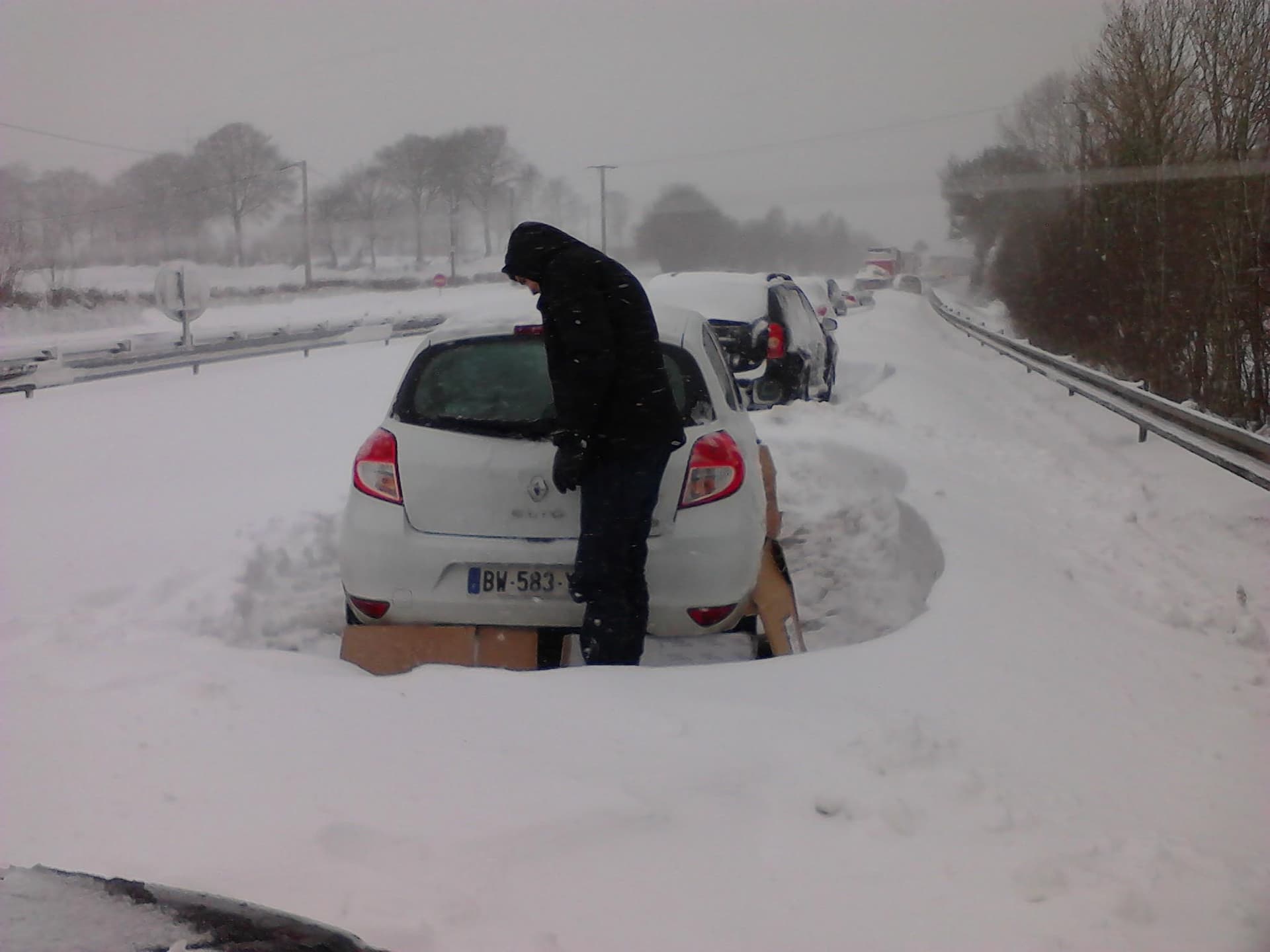 Récit d'un naufragé de la route, près de Brix (Manche) : "nous allons a la centrale nucléaire de Flammanville. Mal informé, nous empruntons la RN13 le 11/03/13, entre 18h et 20h, mais nous ne pouvons plus avancer. Nous passons la nuit sans assistance, ni eau, ni de nourriture, ni d'information sauf la radio locale ! (inadmissible)"