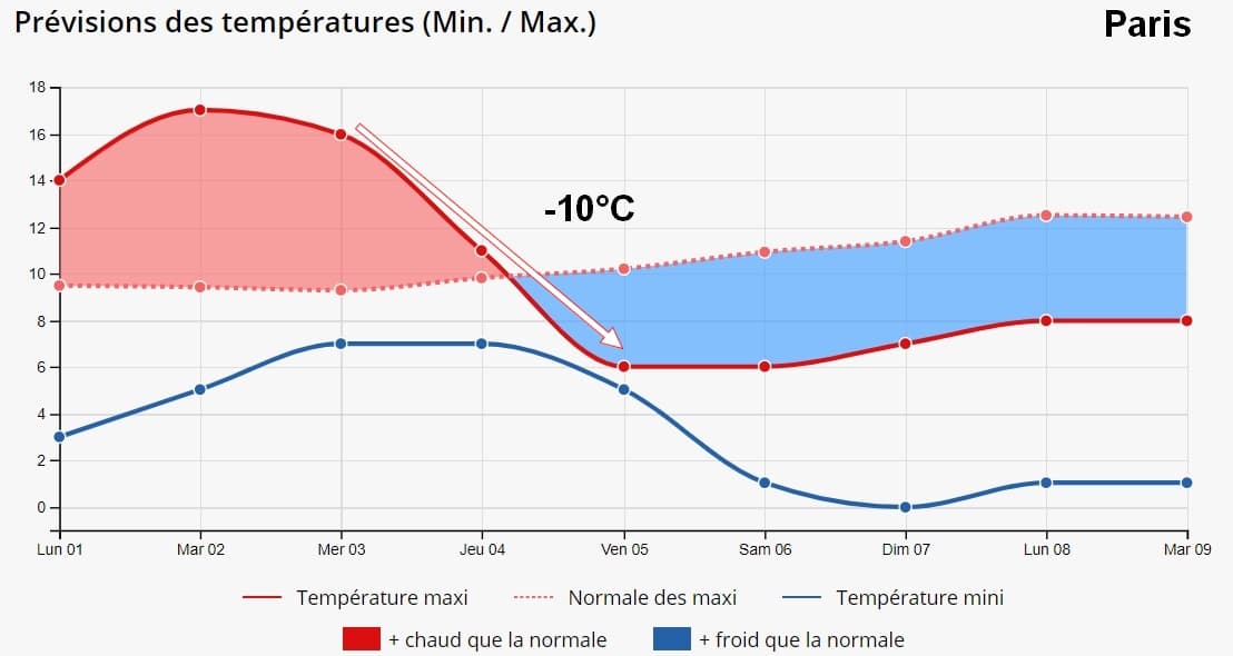 Evolution des températures sur les 9 prochains jours à Paris – Via meteo-paris.com