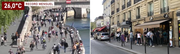 Foule sur les quais et devant les glaciers à Paris le mercredi 31 mars 2021 - Eka Leladze et Météo Villes