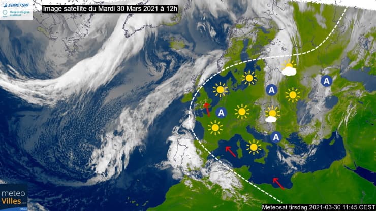 Image satellite en Europe le mardi 30 mars 2021 à la mi-journée - via EUMETSAT