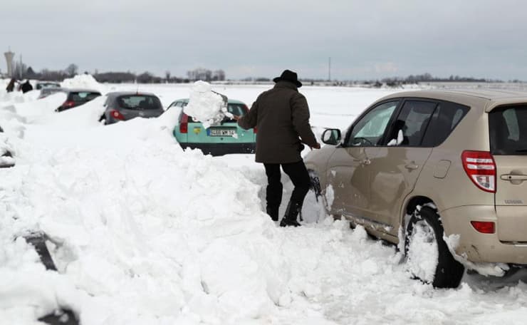 Véhicules piégés par la neige à Brouay près de Caen (Calvados) le 13 mars 2013 - photo AFP