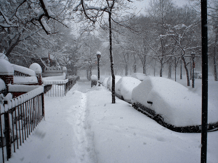 New York sous le blizzard lors de la tempête du 12 février 2006, apportant 68 cm ! - photo Wikipedia