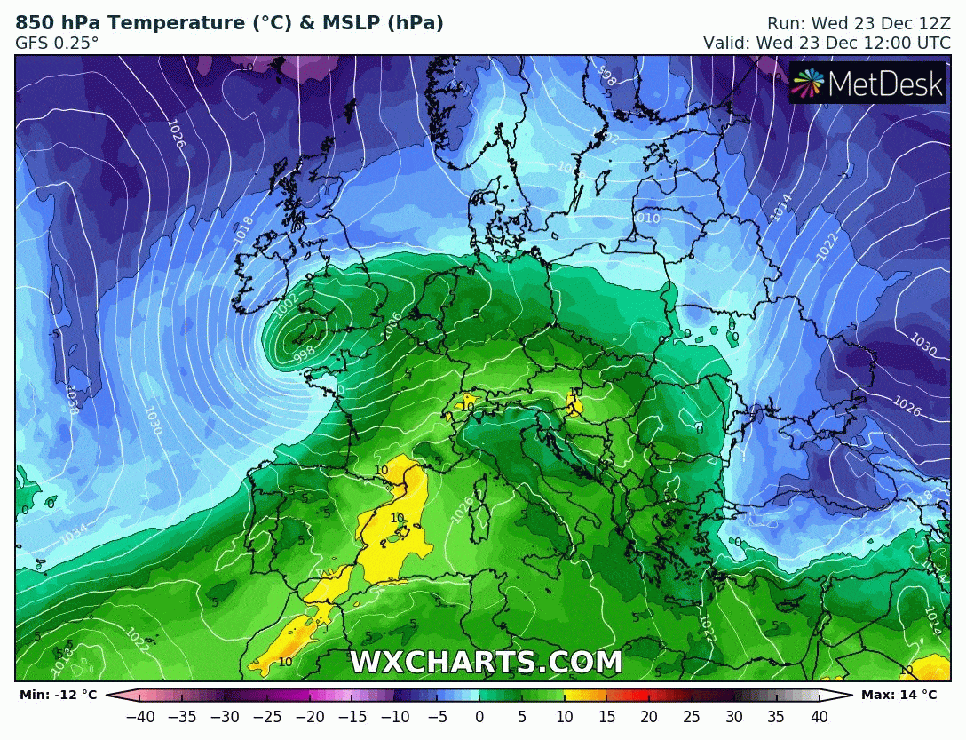 Animation de la masse d'air du jeudi 24 au samedi 26 décembre 2020 - via wxcharts.com