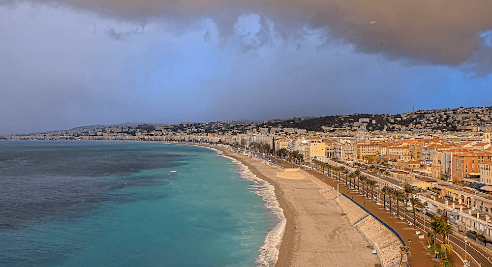 Arrivée de l'orage par l'ouest de Nice entre 7h23 (en haut) et 7h28 (en bas) - caméra Viewsurf