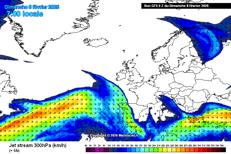 Évolution du courant jet jusqu'à lundi 16 février 2026 - meteociel - GFS