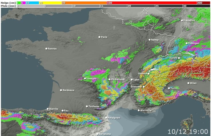 Les modélisations d'ici au 10 décembre prochain s'attendent à des quantités de l'ordre de 25 à 50 cm sur l'ouest de la chaîne pyrénéenne ainsi que sur les sommets du Massif Central et du Jura. Sur l'ouest des Pyrénées et la chaîne des Alpes, des quantités supérieures à 50 cm sont envisagées, pouvant atteindre 1 mètre de neige sur le relief des Pyrénées-Atlantiques et des Hautes-Pyrénées mais aussi celui des Hautes-Alpes, et ce dès moyenne montagne !