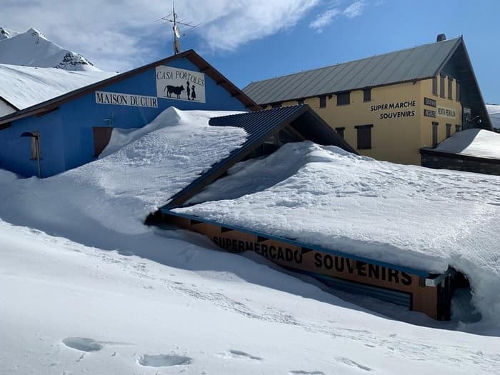 La couche de neige dépasse les 250cm en haute montagne dans les Pyrénées en cette fin de semaine comme ici au col du Portalet - Via Twitter @CyNPirineos