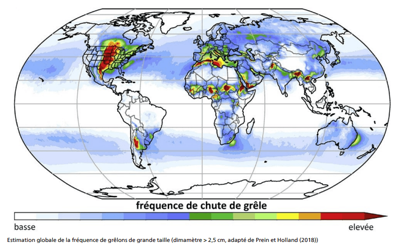 Fréquence des chutes de grêle dans le monde - via Météo Suisse