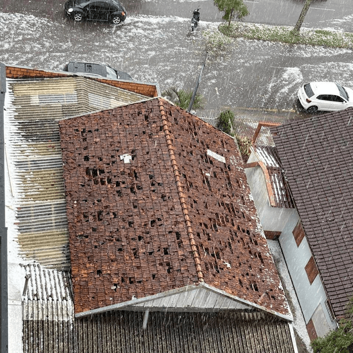 Toiture endommagée par la grêle à Erechim (Brésil) le dimanche 23 novembre 2025 - via Geração FM