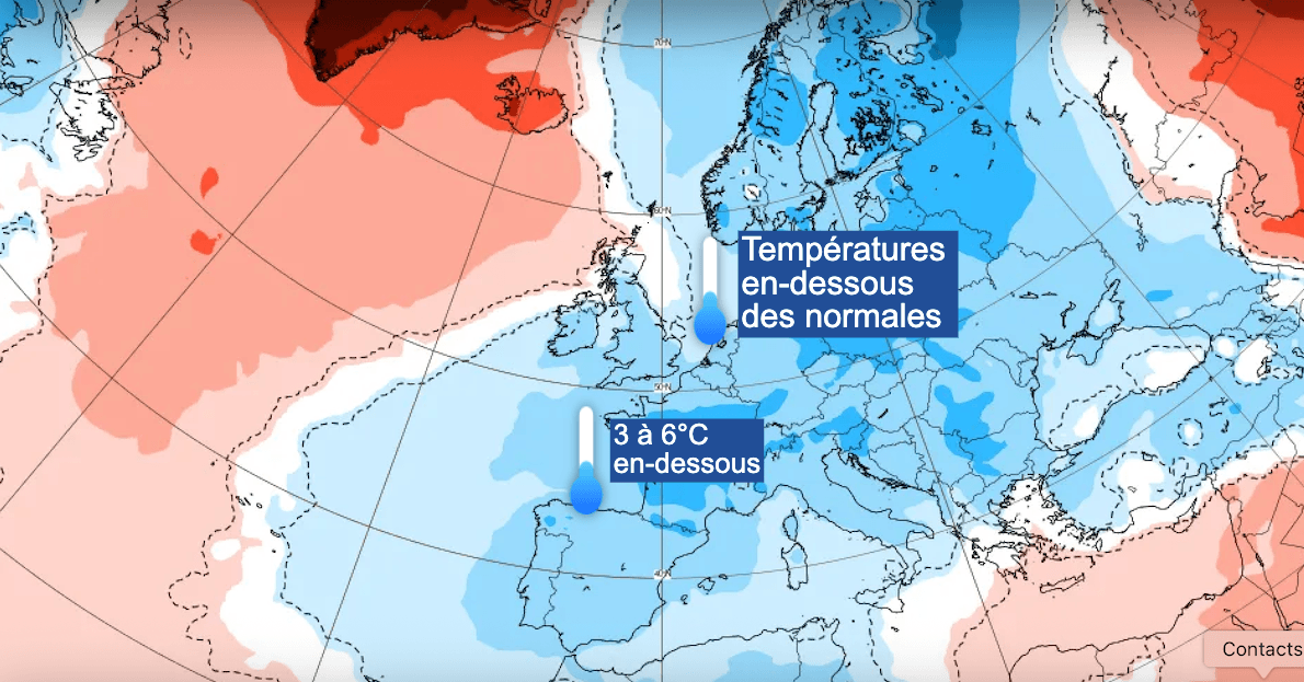 Anomalies les températures sur l'Europe prévues pour la période du 29 décembre au 5 janvier