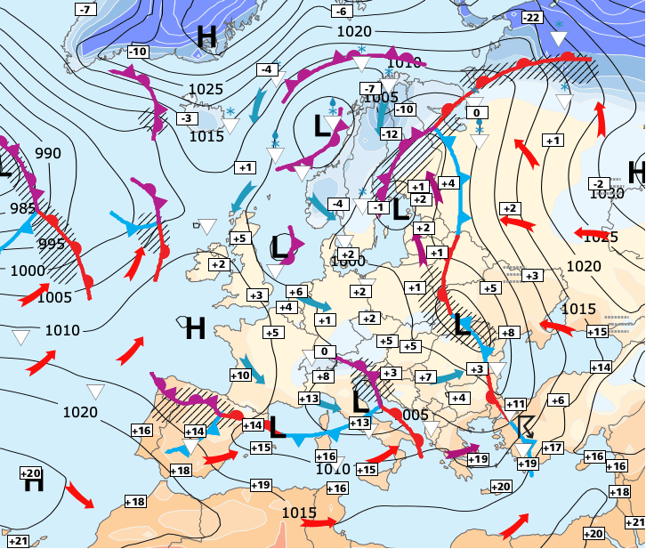 + Concernant les températures : L’air froid qui s’est installé temporairement sur le pays (à l’origine de la neige de ce week-end) va progressivement faire place à de l’air plus doux entre mercredi et vendredi.