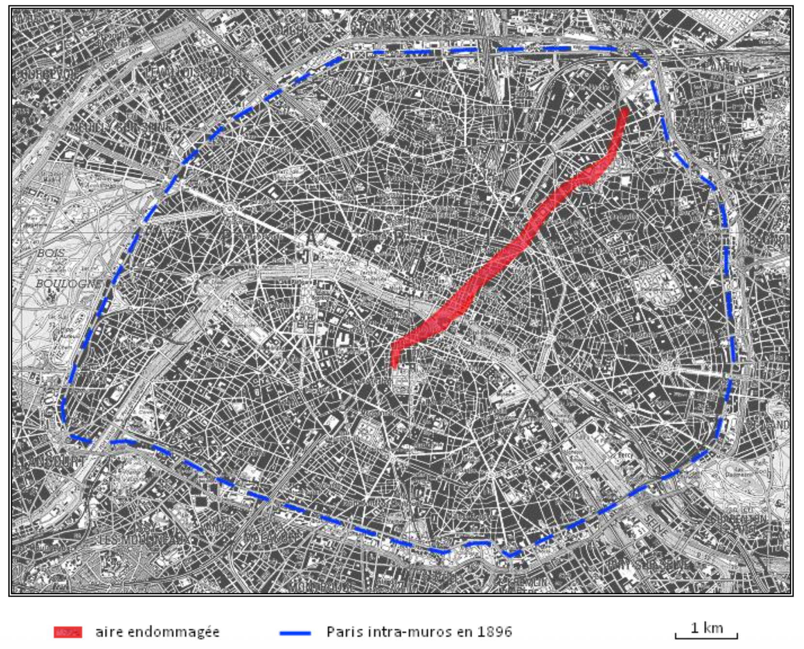 trajectoire de la tornade F2 du 10 septembre 1896 à Paris