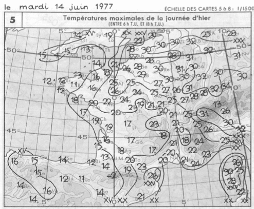 Mauvais temps très frais du 29 juillet 1977 - températures maximales