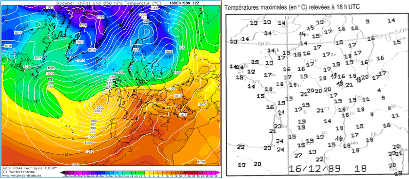 Tempête et douceur exceptionnelle du 16 décembre 1989 - analyse météo